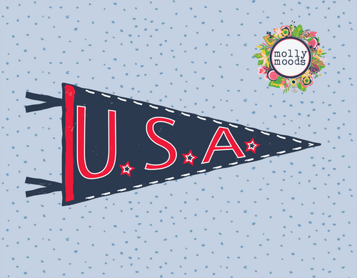 Vintage U.S.A. Pennant Printable Wall Art Digital Download Patriotic, Red White and Blue
